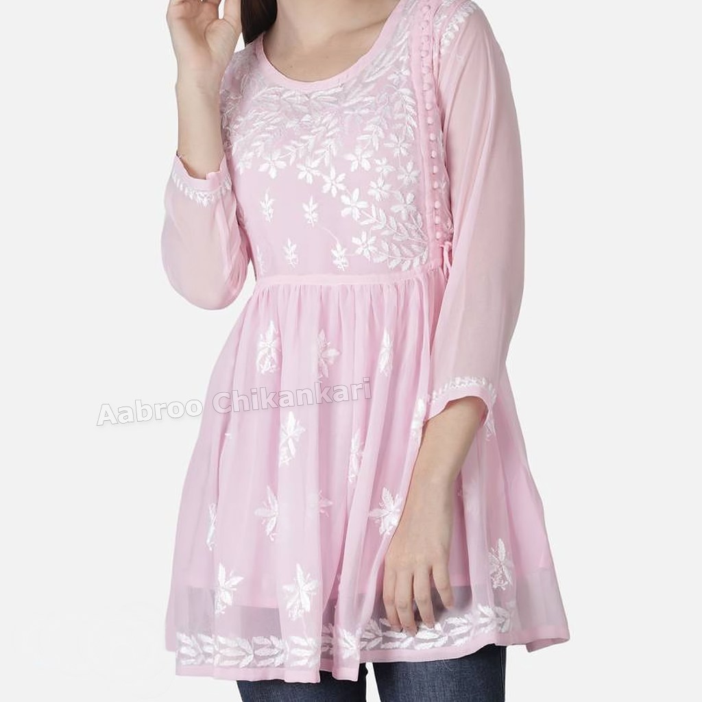 Georgette chikankari kurti, chikankari short kurti for women